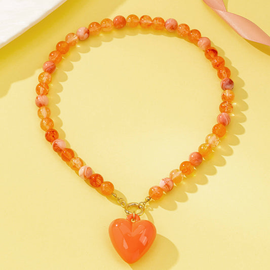 Coral Beaded Heart Necklace